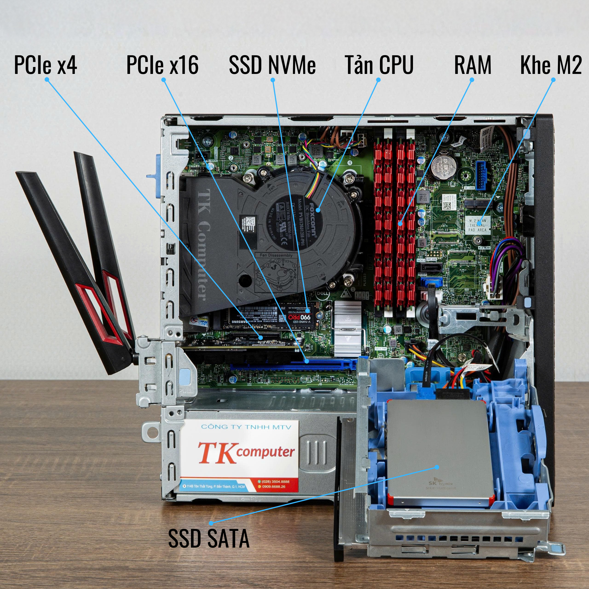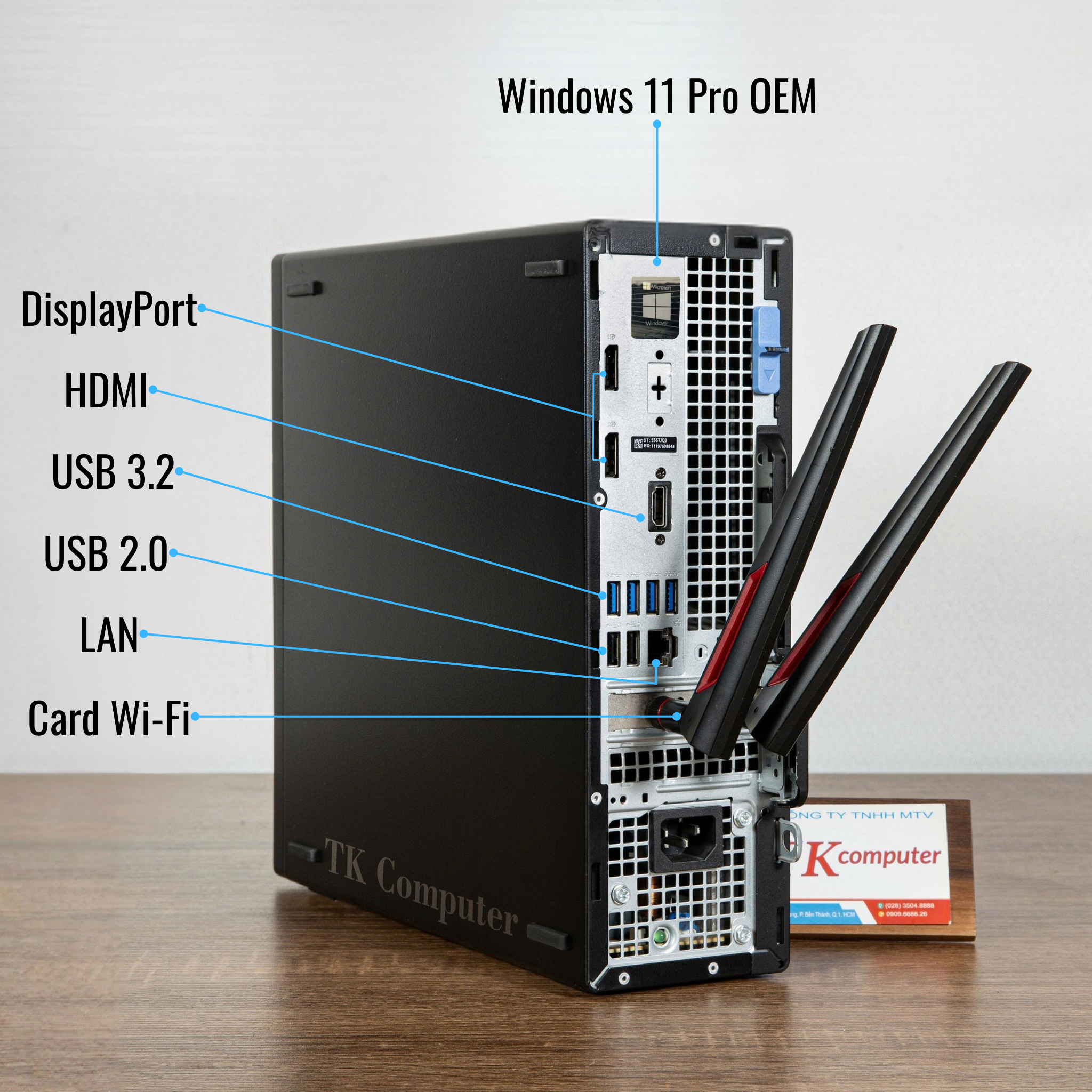 Optiplex 5000 SFF được trang bị đa dạng cổng kết nối gồm USB 3.2 tốc độ cao, USB 2.0, HDMI, DisplayPort và LAN Gigabit, đáp ứng tốt nhu cầu gắn máy in, máy scan, màn hình rời hoặc thiết bị ngoại vi văn phòng. Máy đã có sẵn Wi-Fi và Bluetooth, thuận tiện đặt ở mọi vị trí mà không cần kéo dây mạng phức tạp.