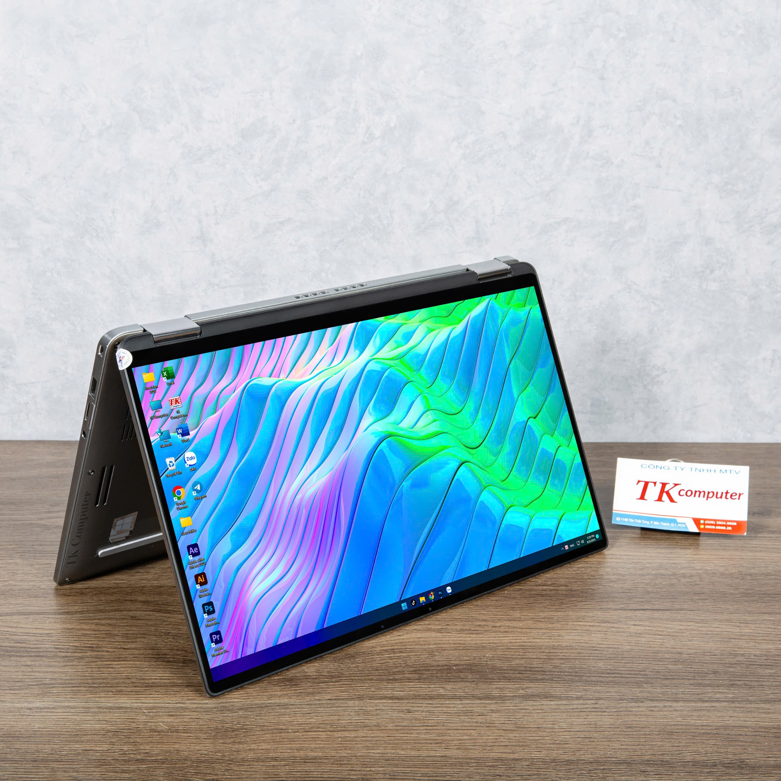Cơ chế bản lề kép cho phép chuyển đổi linh hoạt giữa chế độ laptop, lều (tent), trình chiếu và tablet. Khi họp nhóm hoặc thuyết trình, máy có thể gập ngược để tối ưu không gian hiển thị; khi cần thao tác nhanh, chế độ tablet mang lại trải nghiệm trực quan và gọn gàng hơn so với laptop truyền thống.